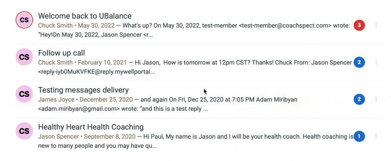 - The number of messages already in that thread (displayed in the circle on the right hand side).