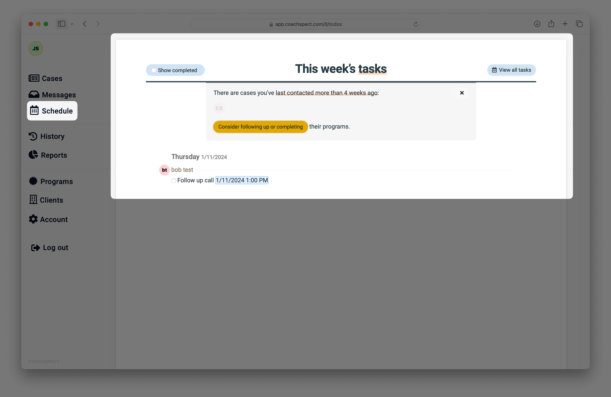 To get a list of all of your tasks click on “View all tasks”.