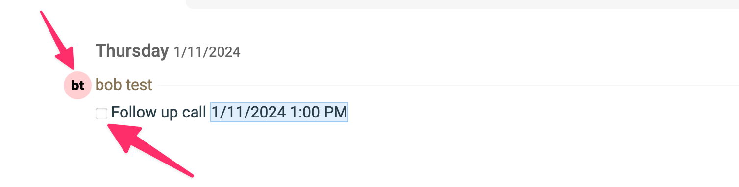 To mark a task as complete you can click the check box, as shown below.