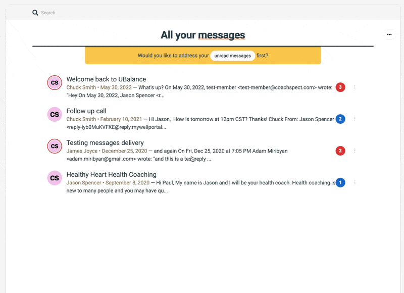 When they reply to that email, their reply will show up as an unread message in your Coachspect account.