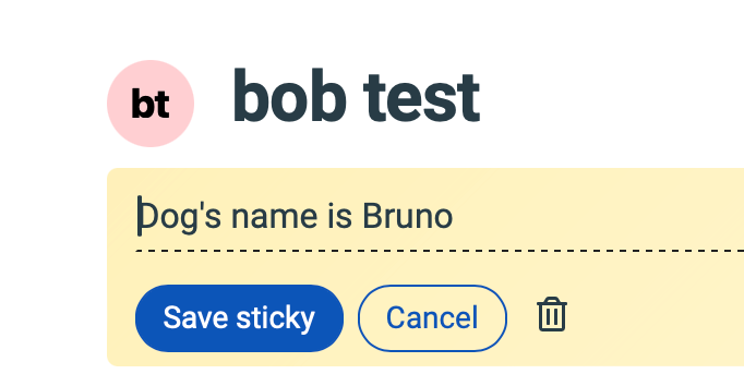 Click on the pencil next to an existing sticky note to make changes or remove it by clicking on the trash icon.